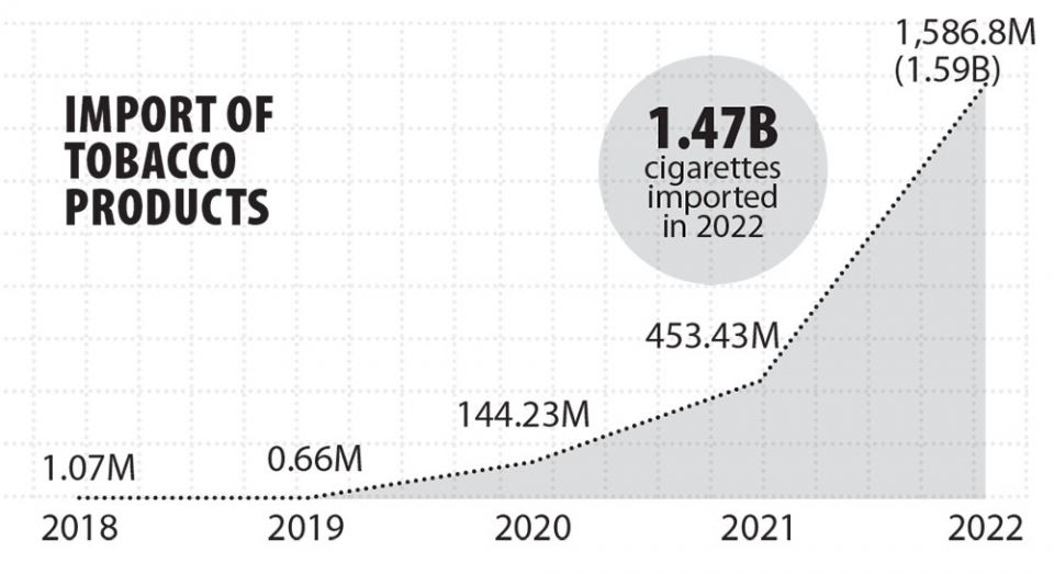 Bhutan imported tobacco and tobacco products worth Nu 1.59 billion (B) in 2022, three times more than the import figure for 2021.