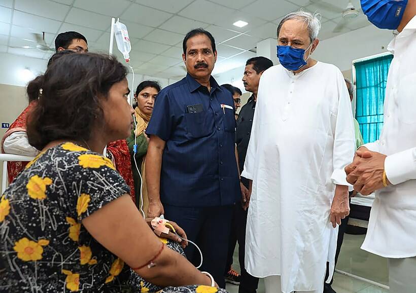 Odisha Chief Minister Naveen Patnaik meets an injured at a hospital in Balasore (PTI) 10/12